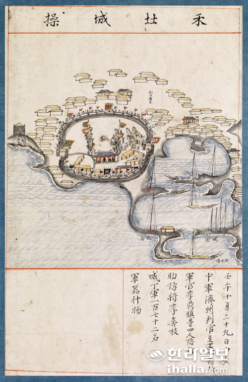 ▶인구 부족에 너나없이 군역 져야 하는 섬=전쟁기의 제주 상황은 간단치 않았다. 명종실록의 1555년 10월 12일 기사엔 제주성 전투에 힘쓴 이들의 노고를 위로하기 위해 파견했던 선로사(宣勞使)인 홍문관 부교리 윤의중의 입을 통해 해마다 흉년이 들어 백성과 물자가 모두 흩어지고 있는 제주 섬의 현실이 드러난다.