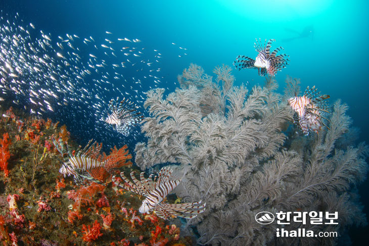 | 최근에 제주 남쪽 바다에 쏠배감펭이 많아졌다. 제주도의 해양보호구역은 기후변화로 북상한 생물들의 기착지 역할도 한다, 강동완 제공 |