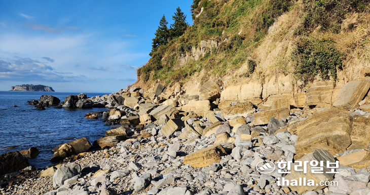 | 서귀포시 서흥동 일대의 해안절벽과 절벽으로부터 떨어져 나온 여러 바위가 있는 이곳은 천연기념물 제196호로 지정된 '제주 서귀포층 패류화석 산지'이다. 유네스코가 지정한 제주도 지질공원 중 '서귀포층 패류화석'이기도 하다. |