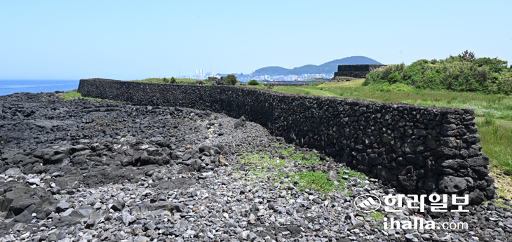 | 제주시 화북동 별도환해장성. 제주에서는 과거 왜구로 대표되는 적의 침입을 막기 위해 해안선을 따라 이 같은 환해장성을 쌓았다. 이상국기자 |