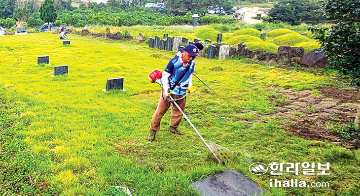 최근에는 평장을 만들어 편하지만, 이 또한 조금씩 자연장으로 바뀌어 국가가 일정 기간 관리하다 공원지구로 운영하는 문화가 빠르게 확산될 것이다. 요즘 제주는 벌초 대목이다. 가족 묘지를 조성하지 못한 집안은 2~3일 벌초를 해야 할 것이고 가족묘를 조성한 집안에서는 몇 시간이면 끝낼 것이다. 벌초기계를 잘 다뤄서 무탈하게 마치기를 기원한다.