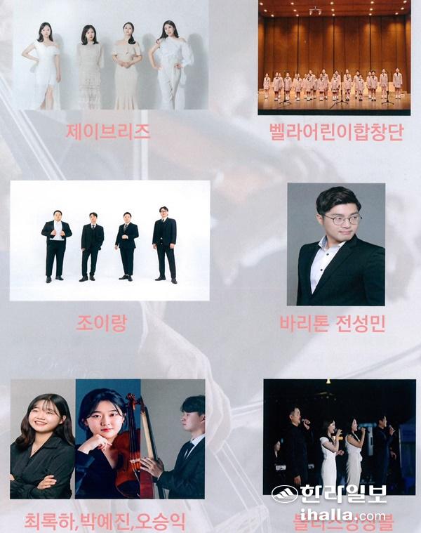 이들은 이번 음악회에서 청년 세대의 고민과 지역 콘텐츠를 담은 프로그램을 선보인다. 출연진은 여성 성악 4인 크로스오버 팀 '제이브리즈', 남성 성악 팀 '조이랑', 서귀포의 청년 예술인이 지휘하는 '벨라어린이합창단', 3중주 팀인 박예진·최록하·오승익, 바리톤 전성민, 혼성 사중창 팀 '블리스 앙상블' 등이다. 관람료 무료.