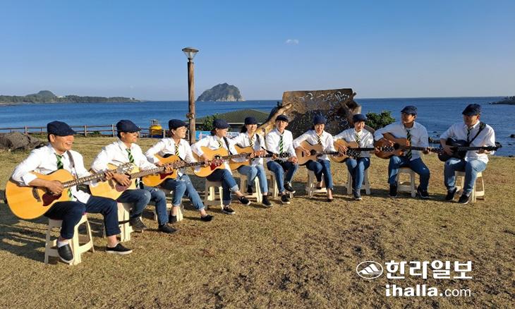 작가의 산책길 공연을 펼치는 통기타 동아리 투카포. 서귀포시 제공