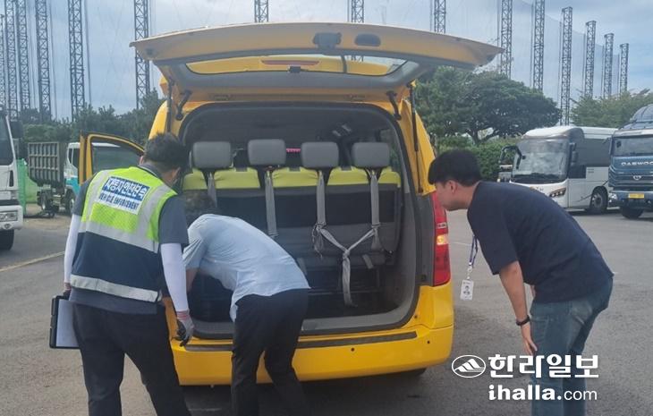 서귀포시, 교통안전공단, 경찰 관계자로 구성된 합동 점검반이 어린이 통학 차량을 점검하고 있다. 서귀포시 제공