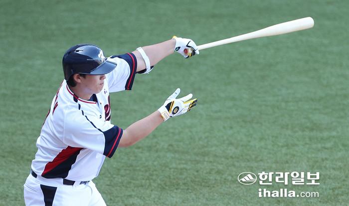 선두 김혜성(키움 히어로즈)이 중견수 앞에 안타를 치고 빠른 발로 2루에 도달해 선취점을 포문을 열었다.