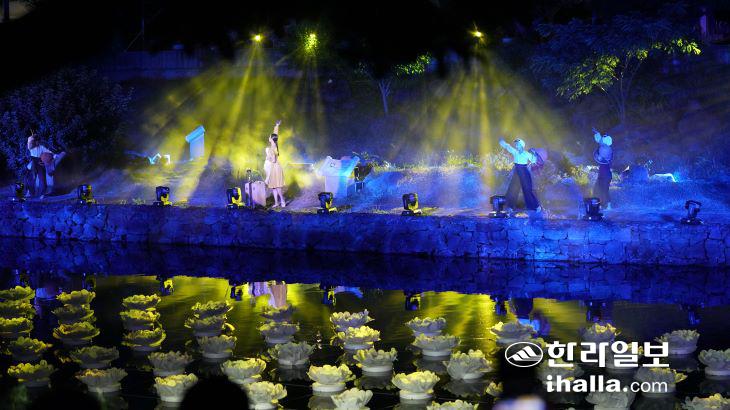 | 지난 8일 산지천 수상무대에서 지난 7일 우천으로 취소된 '제주의 할망' 주제공연이 첫선을 보였다. 오은지기자 |