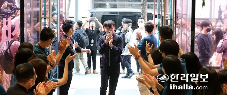 오전 8시. 카운트다운과 함께 문이 열리고 손님이 애플 명동 안으로 100명 가까운 인파가 물밀듯 쏟아졌다. 2층에서는 사전 예약 고객을 위해 애플 특유의 '축하 세레머니'가 열렸다.