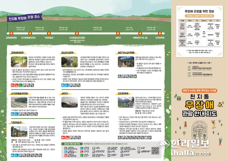 천지동 측은 "무장애 관광 안내 지도를 주요 관광지, 장애인단체 등에 비치해 필요한 정보를 제공할 계획"이라며 "앞으로 휠체어 장애인 등 이동 약자들이 편리하게 방문할 수 있는 곳들이 많아졌으면 한다"고 덧붙였다.