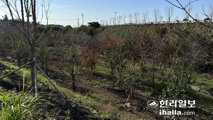 제주시 아라동 달무교차로 주변에 조성된 기후대응도시숲. 김도영기자