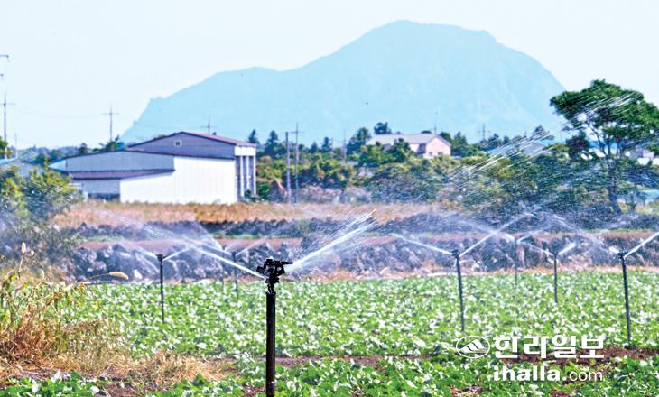 가을 가뭄으로 어려움을 겪고 있는 제주 서부지역의 스프링클러.
