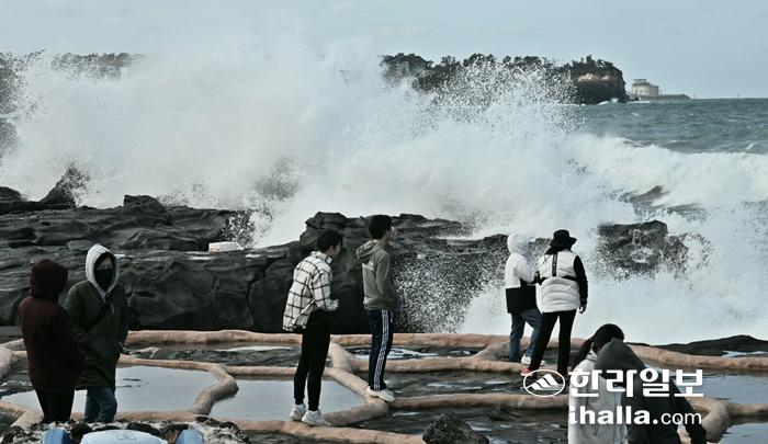 제주시 애월읍 구엄리 해안의 높은 파도. 한라일보DB