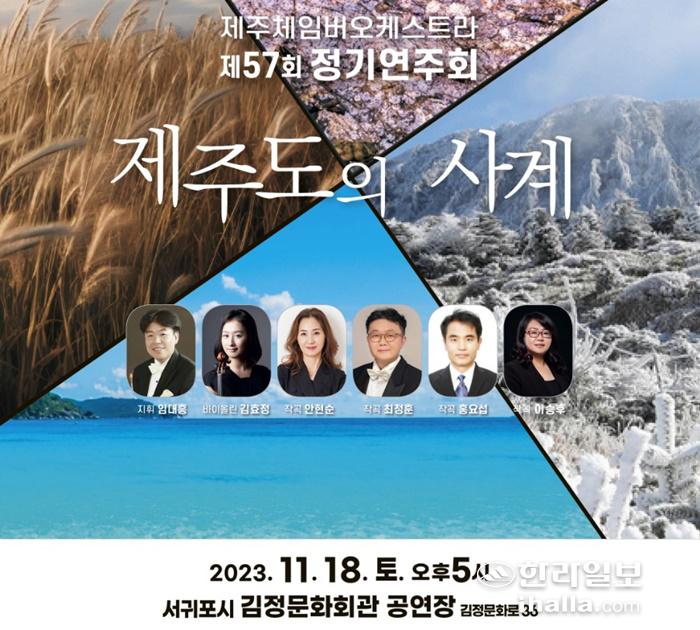 18일 오후 5시 김정문화회관에서는 제주체임버오케스트라(지휘 임대홍)의 제57회 정기연주회 '제주도의 사계'를 무대에 올린다. 2023년 공연장 상주단체 육성 지원 사업 기획 공연으로 마련됐다.
