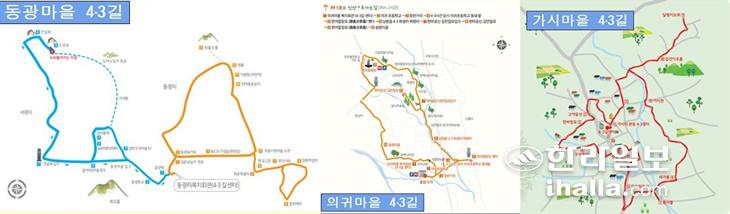 서귀포시지역에 있는 3개 마을의 4·3길 지도. 서귀포시 제공