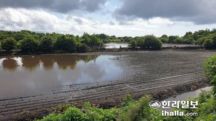 지난 9월 서귀포시 동부지역 집중 호우로 농지가 물에 잠겨 있다. 한라일보 DB