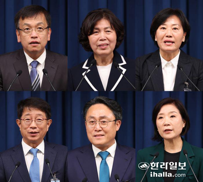 윤석열 대통령은 4일 경제부총리 겸 기획재정부 장관 후보자로 최상목 전 대통령실 경제수석(사진 윗줄 왼쪽)을 지명하는 등 장관 6명을 교체하는 개각을 단행했다.