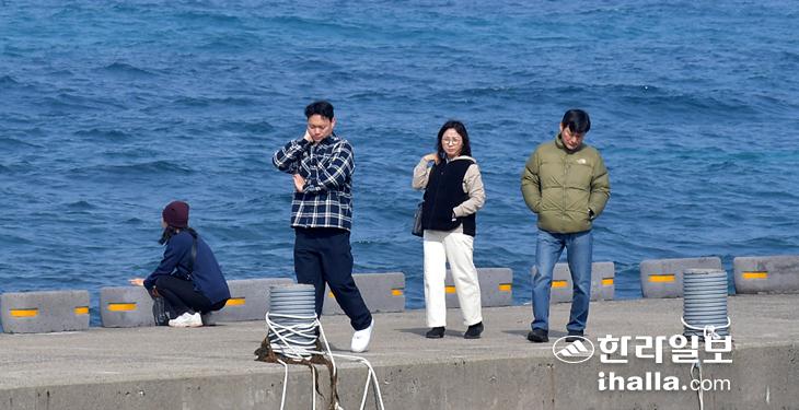제주 겨울바다 즐기는 관광객. 한라일보DB