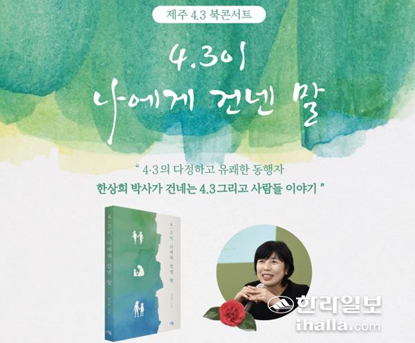 '4·3이 나에게 건넨 말'에는 제주4·3을 기록한 강요배 작가의 작품, 4·3 진상 규명 역사의 현장을 담은 김기삼 작가의 사진, 고(故) 고현주 작가의 설치 작품 등이 실렸다. 한 박사는 "4·3의 영혼들, 역경을 극복한 유족들, 진상 규명에 힘을 모은 시민들, 광풍 이후 다시 제주 섬에 찾아와 꽃피운 자연의 이야기를 담으려 했다"면서 북콘서트에서는 이 책에 다 쓰지 못한 내용까지 전하고 싶다고 했다. 음료 포함 참가비 유료.
