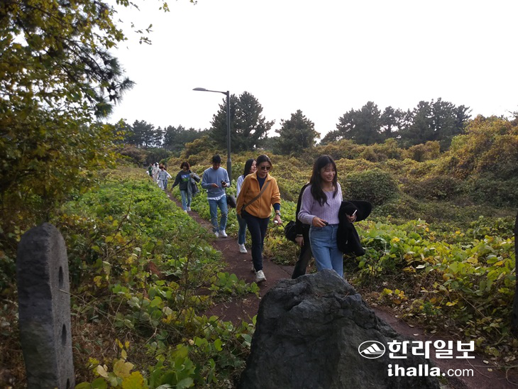 총 3.4㎞ 길이의 구간을 걷는 데 3시간이 더 걸렸다. 속도를 내기보다는 야트막한 담장의 마을 안길에서 해안까지 찬찬히 이동하며 그곳이 품은 사연에 관심을 갖도록 짜여졌기 때문이다. 5~6명씩 팀을 이룬 여행자들은 출발 전 하나씩 받은 재활용 가능한 필름카메라(필카)를 들고 눈길이 닿는 풍경마다 걸음을 멈춘 채 그 순간을 담았다. 걷는 동안엔 아날로그 감성에 어울리는 1980년대 가요가 휴대전화 플레이리스트로 제공됐다. 누군가 플레이리스트에 있는 이문세의 '가을이 오면'을 켜자 여기저기서 흥얼거리며 따라부르는 소리가 들렸다.