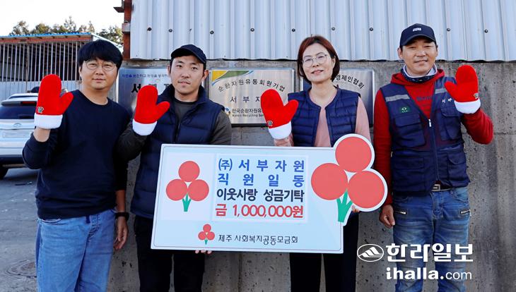 (주)서부자원의 전 직원들은 지난해부터 본격적으로 제주사회복지공동모금회 사랑의열매(이하 사랑의열매)에 십시일반으로 모은 성금을 기탁하면서 이웃사랑을 실천하고 있다.