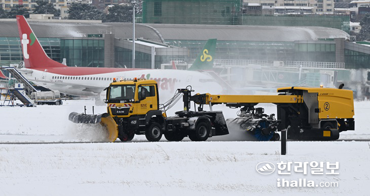 제설 위해 활주로 임시 폐쇄... 오후 3시까지 연장