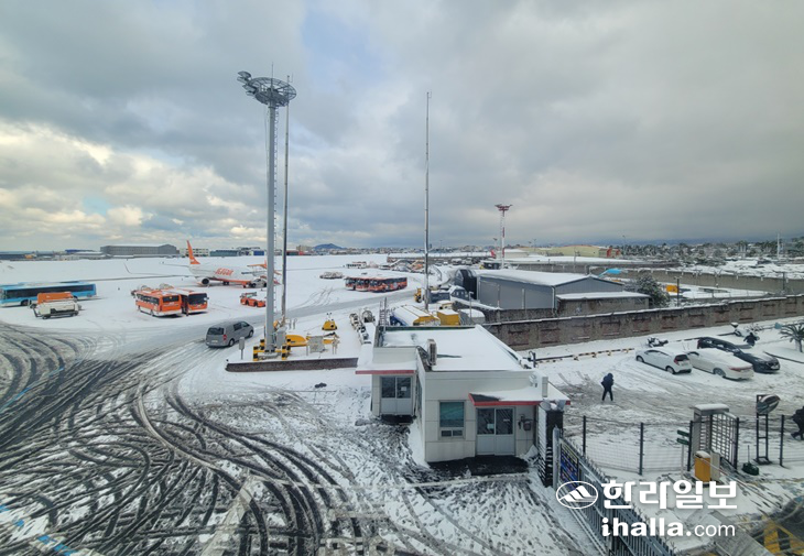 이날 한국공항공사 제주공항은 계속되는 폭설에 활주로에 많은 눈이 쌓이자 제설 작업을 위해 이날 오전 8시20분을 기해 제주공항 활주로 운영을 중단했다. 당초 제주공항은 오전 9시50분까지 제설 작업을 마치고 활주로 운영을 재개하기로 했지만 워낙 눈이 많이 내린 탓에 폐쇄 시간을 오전 10시50분, 오후 1시, 오후 3시까지로 세차례에 걸쳐 연장해 제설작업을 벌이고 있다.