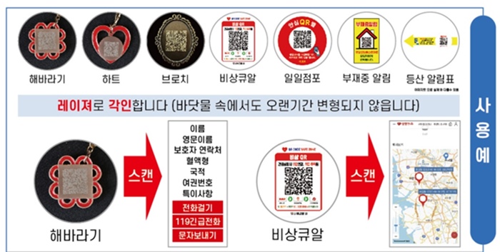 이와함께 플라스틱 단추 위에 레이저로 QR코드를 각인시킨 제품으로 만약 해상에서 불의의 사고를 당할 시 오랜기간 지나도 레이저로 각인된 QR코드를 즉시 확인할 수 있어서 실종자 확인에 큰 도움을 줄 수 있다.