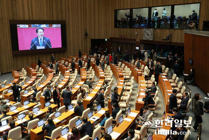 與, 반대 토론한 뒤 표결 전 퇴장…민주, 정의당 등과 함께 처리