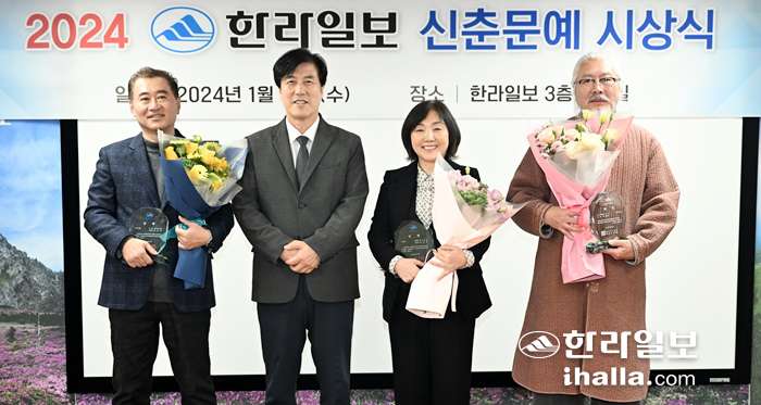 [한라일보] '2024 한라일보 신춘문예'를 통해 탄생한 세 명의 신인 작가들이 '새로운 시작'의 첫걸음을 내디뎠다. 새해 시인, 시조시인, 소설가로 문단에 힘차게 발을 디딘 신인들에겐 앞으로 걸어갈 문학의 길에 더 큰 영광이 있길 기원하는 응원과 격려가 전해졌다.