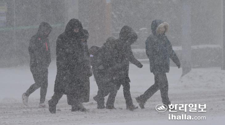 23일 오전 폭설 내리는 제주지방. 이상국 기자