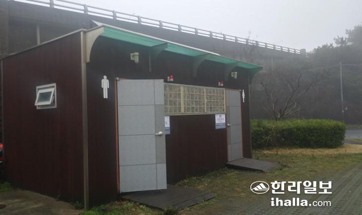 서귀포시 안덕면 동광리 IUCN 기념숲 동측 입구 공중화장실 문짝이 새것으로 바뀌었다. 진선희기자