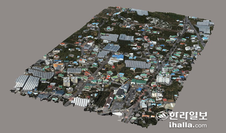 | 드론을 활용해 구축한 2024년 서귀포시 지적재조사지구인 토평 1차 3D 입체 모델. 서귀포시 제공 |