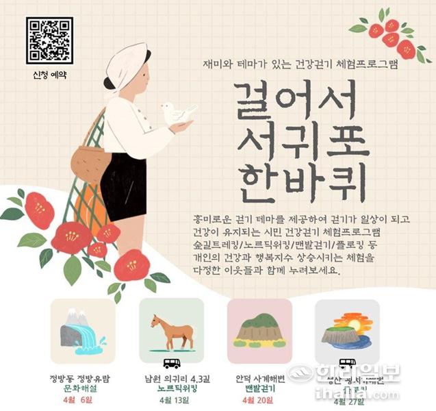 [한라일보]제주 서귀포시와 서귀포시걷기협회는 '걸어서 서귀포 한 바퀴' 4월 참가자를 선착순 모집하고 있다.