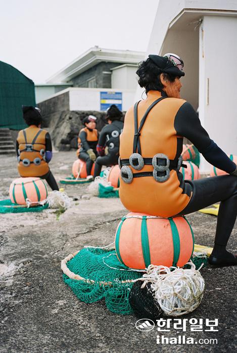 [한라일보] 해녀가 바닷속에 들어가 해산물을 채취하는 일을 일컫는 '물질'. 이 작업에 필수적인 도구가 바닷물에 띄워 놓는 '테왁'이다. 깊은 물속을 헤치며 해녀들이 힘겹게 딴 물건들은 테왁에 달린 그물 '망사리'에 담긴다.