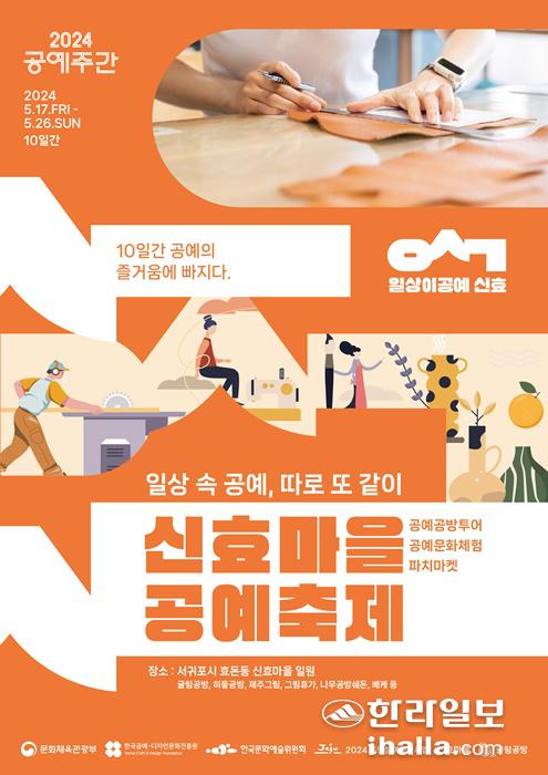 이 축제는 문화체육관광부 주최, 한국공예디자인문화진흥원 주관, 한국문화예술진흥원이 후원하는 '2024 공예주간' 기획 공모 사업에 선정된 귤림공방과 2024 주민참여예산사업으로 '세대 간 문화 단절 해소 프로젝트'를 추진하는 신효마을회가 협업해 준비했다. 이달 17일부터 26일까지 '일상 속 공예, 따로 또 같이'를 주제로 공방 체험, 한 평 공예, 전통 공예 체험, 공방 투어 등이 잇따른다.