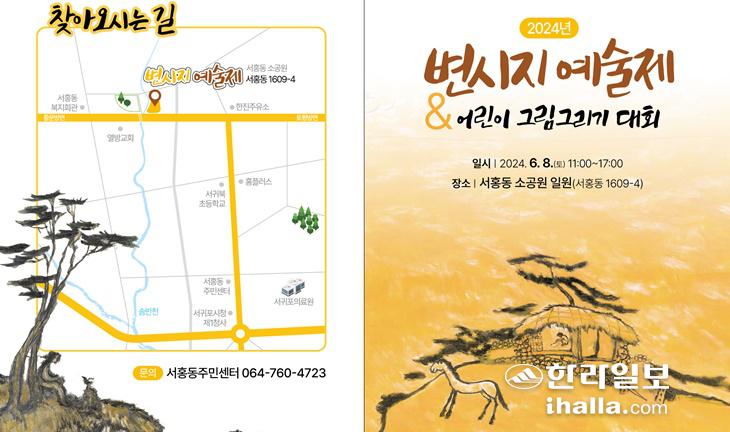 [한라일보]제주 서귀포시 서홍동은 오는 8일 비 날씨 예보에 변시지 그림정원에서 개최할 예정이던 '변시지 예술제'를 서홍동 소공원(서홍동 1609-4번지)으로 옮겨 치른다고 6일 밝혔다.