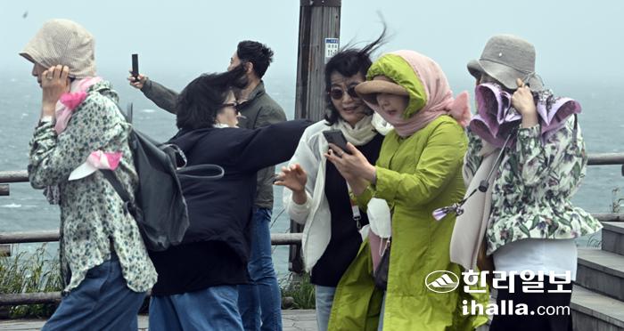 [한라일보] 정체전선이 북상하면서 장맛비가 멈춘 제주지방에 강풍특보가 내려지며 태풍급 강한 바람이 몰아치고 있다.