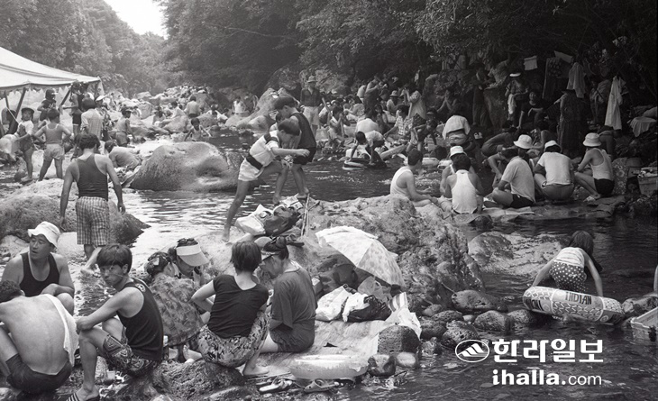 돈내코 계곡에서 물놀이를 즐기는 사람들(1989년)