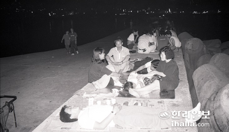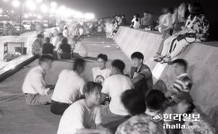 더위를 이겨내기 위해 야간에 탑동광장으로 나온 사람들(1993년)