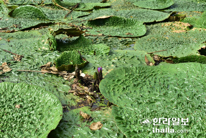 [한라일보] 제주시 동부지역에 위치한 저류지에서 대규모 가시연꽃 군락지가 발견돼 눈길을 끌고 있다.