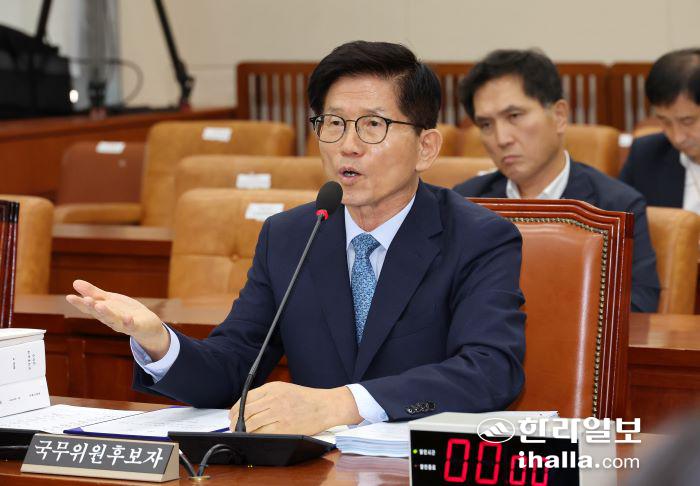 김문수 고용노동부 장관 후보자가 26일 오전 국회에서 열린 인사청문회에 참석해 더불어민주당 소속 안호영 위원장의 질문에 답변하고 있다. 연합뉴스