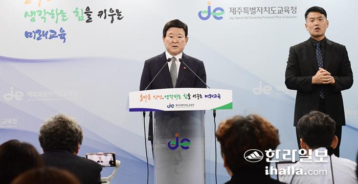 김 교육감은 "고교체제 개편의 대전제는 제주시 평준화 일반고의 정원은 늘어나지만 제주시 동지역 고등학교 초정원의 비율은 변동 없이 추진해, 읍면지역의 일반고 학생이 줄어드는 일은 없도록 하겠다"고 말했다.