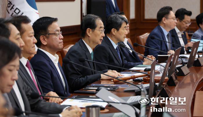 한덕수 국무총리가 3일 서울 종로구 정부서울청사에서 열린 국무회의에서 발언하고 있다. 연합뉴스