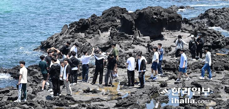 제주시 도두해변 찾은 수학여행단. 한라일보DB