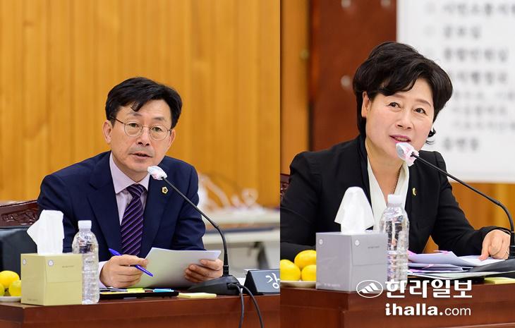 강상수 의원(왼쪽), 이경심 의원(오른쪽). 서귀포시 제공