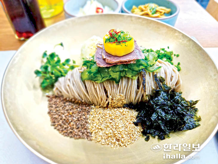 | 한라산아래첫마을 영농조합법인이 운영하는 메밀음식점의 대표 메뉴인 비비작작면. |