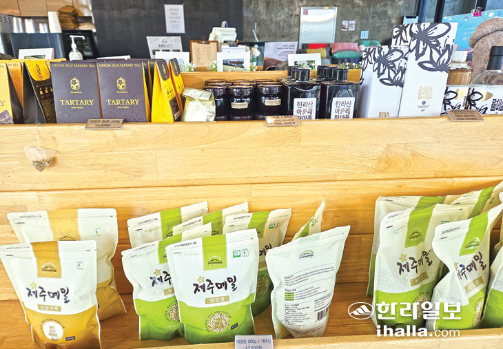 | 가공공장에서 만든 메밀쌀·메밀가루와 OEM 방식으로 만든 여러가지 메밀가공품을 카페에서 판매하고 있다. |