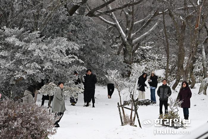 제주기상청 관계자는 "주말까지 제주산지에 눈이 계속 쌓일 것으로 예상되는 만큼 1100도로 등 산간도로 이용자들은 월동장비를 갖춰야 하며 교통통제 상황을 확인하는 등 교통안전에 유의해야 한다"고 당부했다.