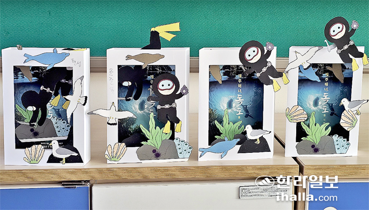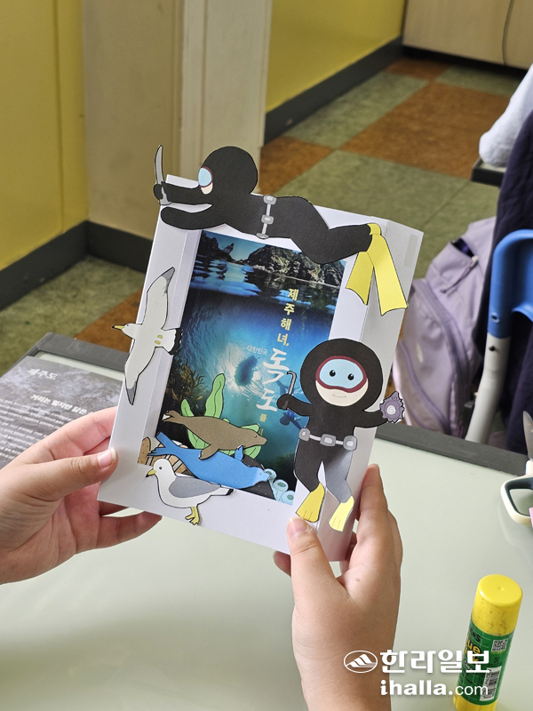 [한라일보] "해녀가 독도에 가서 살았던 이야기, 그 이야기가 결국 독도를 지킨 이야기가 되고, 이제 할머니가 되신 그 해녀들이 다시 독도로 간 이야기를 나눌 거예요. 그리고 옛날이야기처럼 책 속에 덮여 있는 그 이야기를 우리가 짠~하고 펼쳐서 생생하게 팝업 입체 카드로 만들어보는 것까지 진행해 보겠습니다. 빠르게 달려볼게요."