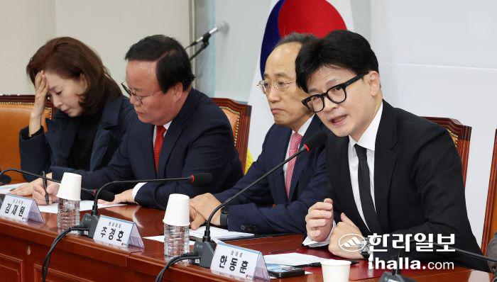 국민의힘 한동훈 대표는 6일 "새로이 드러나고 있는 사실 등을 감안할 때 대한민국과 국민을 지키기 위해서 윤석열 대통령의 조속한 직무집행정지가 필요하다고 판단한다"고 말했다.