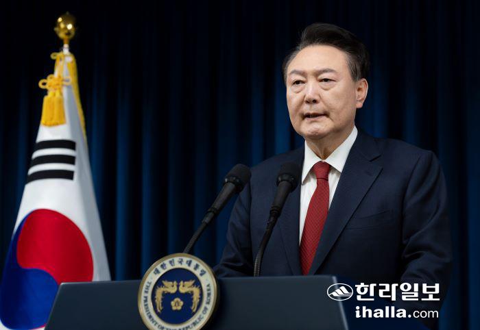 윤석열 대통령이 7일 서울 용산 대통령실 청사에서 대국민 담화를 하고 있다. 연합뉴스